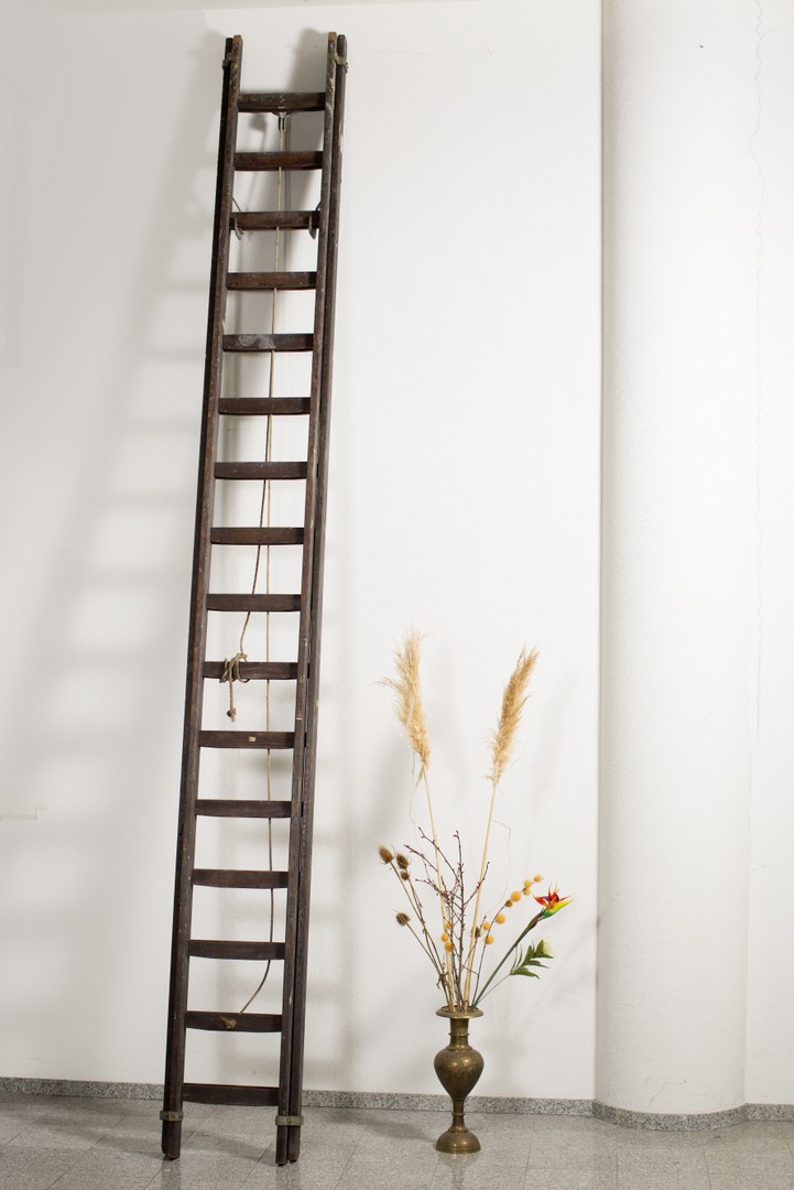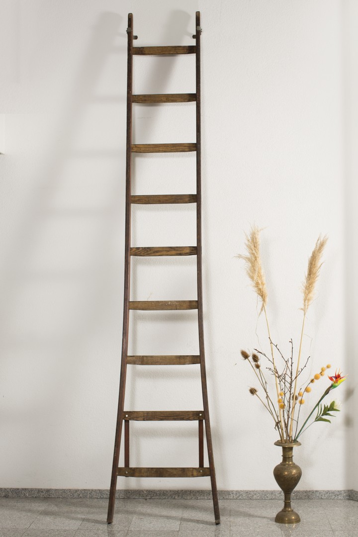 Wij verhuren houten ladders en trappen voor decoratieve doeleinden.